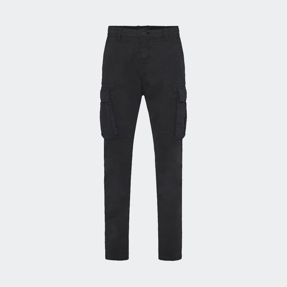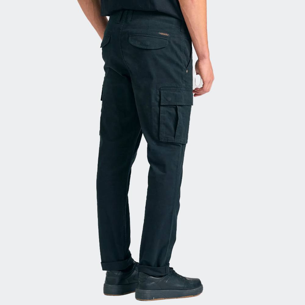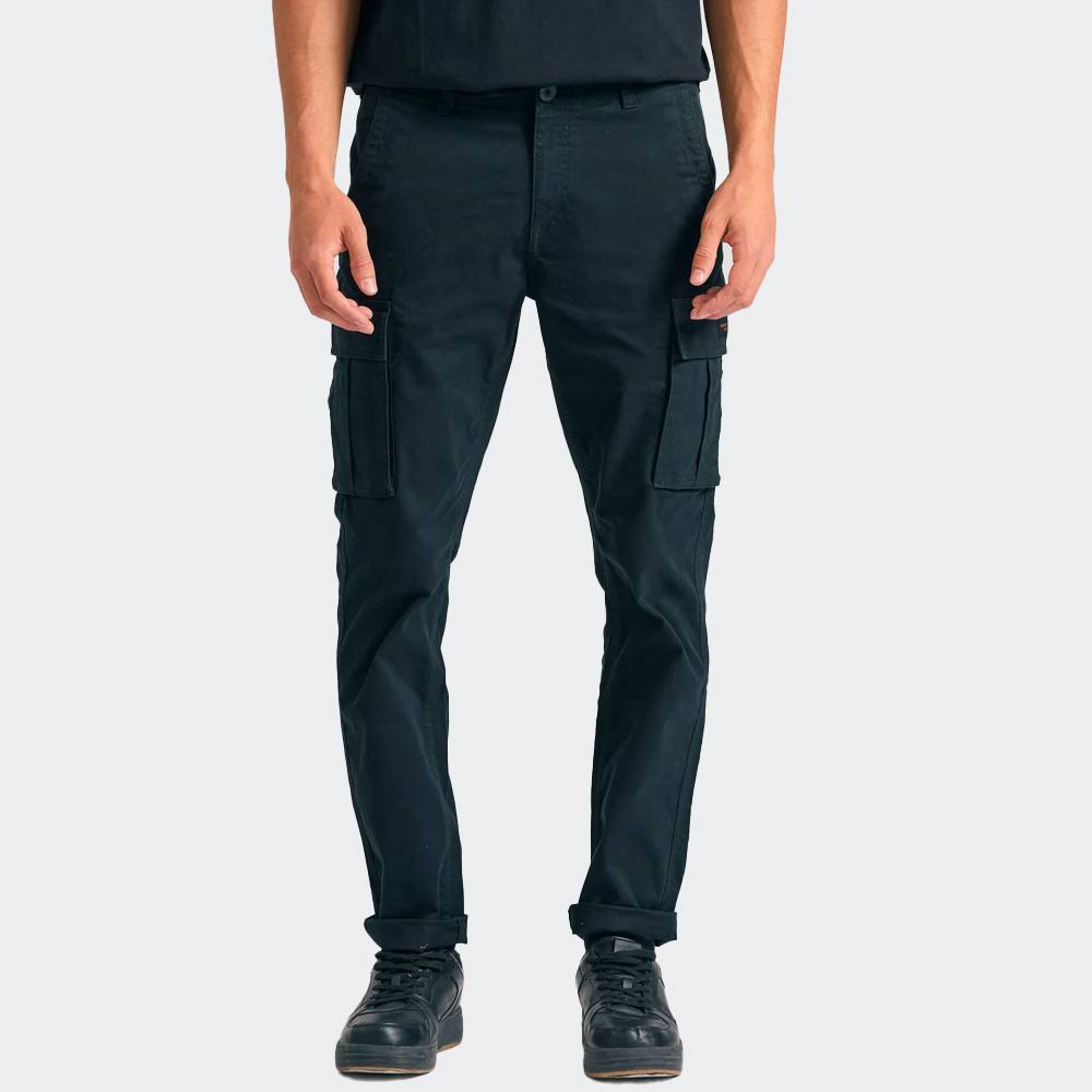 Μονόχρωμο ανδρικό cargo παντελόνι σε ίσια εφαρμογή με στενή γραμμή, ιδανικό για όλες τις εποχές – από φθινόπωρο και χειμώνα μέχρι άνοιξη και καλοκαίρι. Κατασκευασμένο από βαμβάκι με φυσικές ίνες, προσφέρει άνεση και σύγχρονο streetwear χαρακτήρα. Η μέση μέτριου ύψους με θηλιές για ζώνη, το κλείσιμο με κουμπιά και φερμουάρ και η λεία ματ υφή ενισχύουν τον minimal σχεδιασμό του. Συνδυάστε το με ένα casual τοπ ή φούτερ και αθλητικά sneakers για μια άνετη εμφάνιση, ιδανική για την πόλη ή τις υπαίθριες δραστηριότητες.