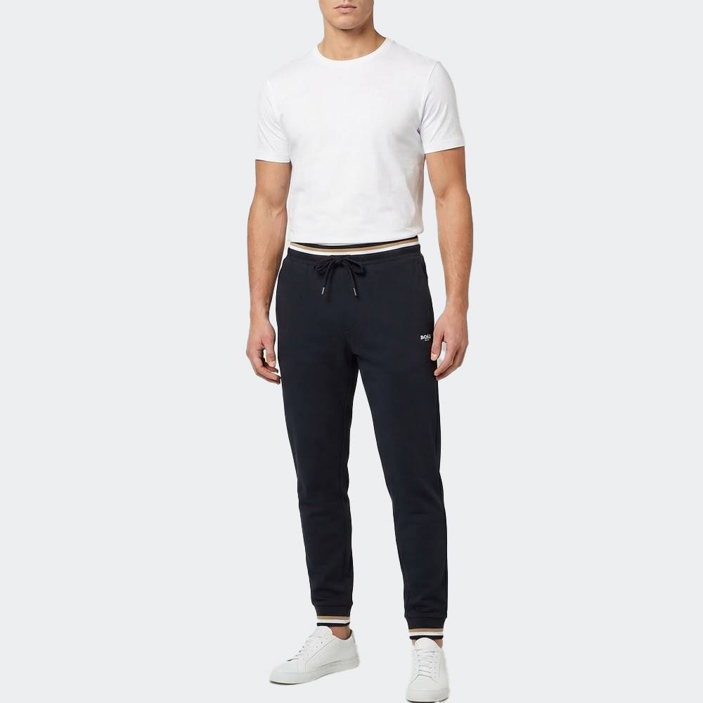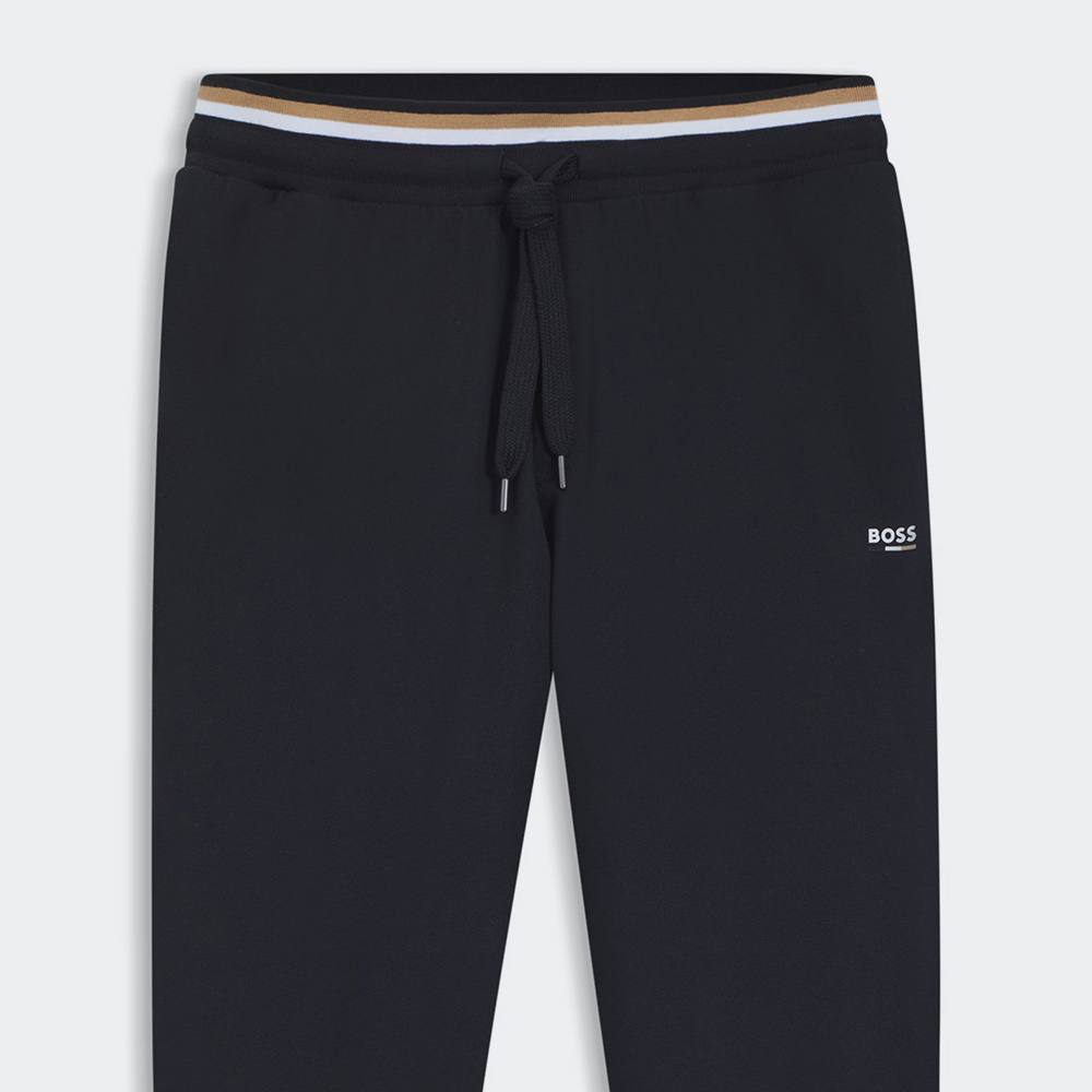 Ανανεώστε τη συλλογή σας για χαλαρές εμφανίσεις με αυτά τα παντελόνια φόρμας BOSS Menswear, κατασκευασμένα από απαλό βαμβακερό ύφασμα terry και διακοσμημένα με τις χαρακτηριστικές ρίγες του brand. Διαθέτουν λεπτομέρεια λογοτύπου και τελείωμα με λάστιχο στο κάτω μέρος για άνετη εφαρμογή.